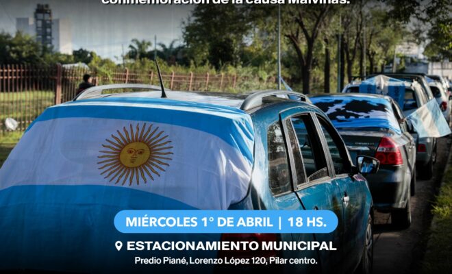 Este miércoles 1 de abril, vecinos y vecinas de todo el distrito podrán sumarse a la caravana de veteranos y familiares de caídos. Partirá a las 18 horas desde el Estacionamiento Municipal, ubicado en el Predio Piané, en Pilar Centro, y llegará al Cenotafio de Pilar, una réplica exacta del Cementerio de Darwin.