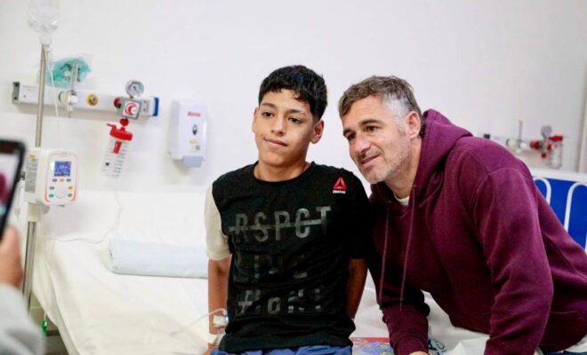 Peralta y Achával acompañaron a los chicos en el Hospital Falcón en el Día de las Infancias