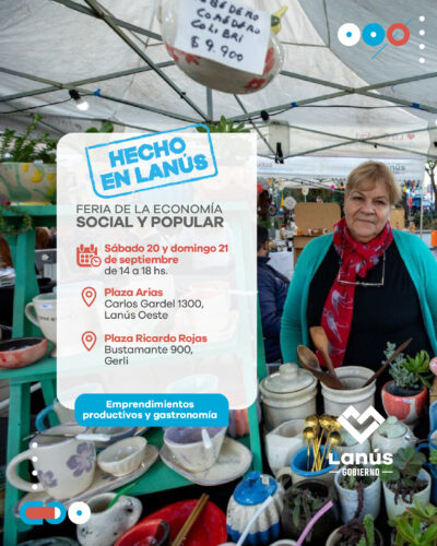 Los días sábado 20 y domingo 21 de septiembre, Lanús Gobierno organizará una nueva edición de la Feria de la Economía Social y Popular ... -
