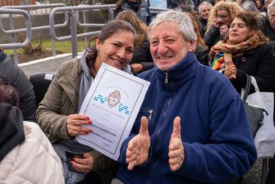 Julián Álvarez, el ministro Mena y Leandro Decuzzi entregaron escrituras a familias de Lanús