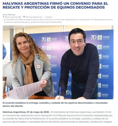 El acuerdo establece la entrega, custodia y cuidado de los equinos decomisados o rescatados dentro del distrito El intendente de Malvinas Argentinas, Leo Nardini, ... -