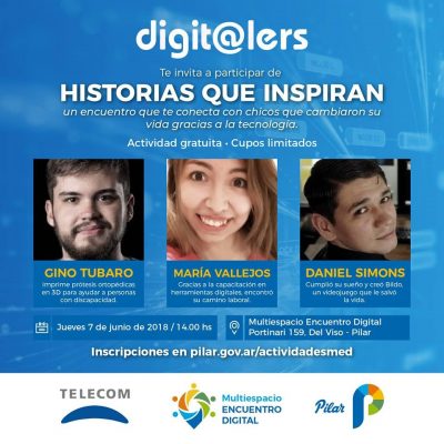 La Subsecretaría de Educación de Pilar invita a participar de la charla Digit@lers: “Historias que inspiran”, que se realizará el próximo jueves 7 de ... -