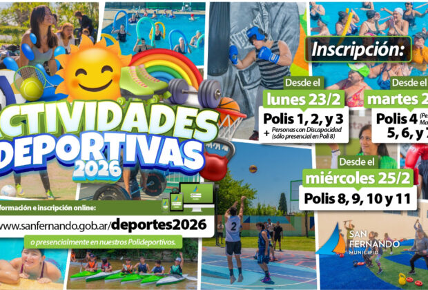 Vecinos y vecinas con domicilio en la ciudad podrán inscribirse en la webwww.sanfernando.gob.ar/deportes2026 para disfrutar de las mejores piletas, canchas, salones y gimnasios del Municipio. Están disponibles ... -