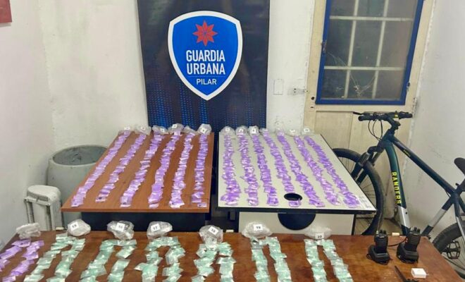 En un nuevo golpe al narcotráfico, la Guardia Urbana de Pilar logró capturar a dos ladrones y secuestrar mil dosis de cocaína, en el barrio Nuestra Señora del Pilar.
