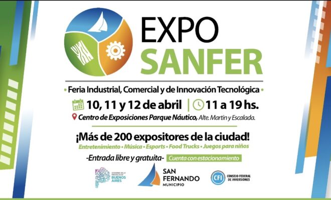 Una nueva edición de “Expo Sanfer” se realizará el próximo 10, 11 y 12 de abril, de 11 a 19h, con 200 stands de expositores sanfernandinos que presentarán sus principales productos y experiencias en una gran feria industrial, comercial y de innovación tecnológica. El evento es organizado por el Municipio de San Fernando y apoyado por el Consejo Federal de Inversiones y el Gobierno de la Provincia de Buenos Aires.